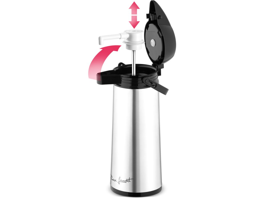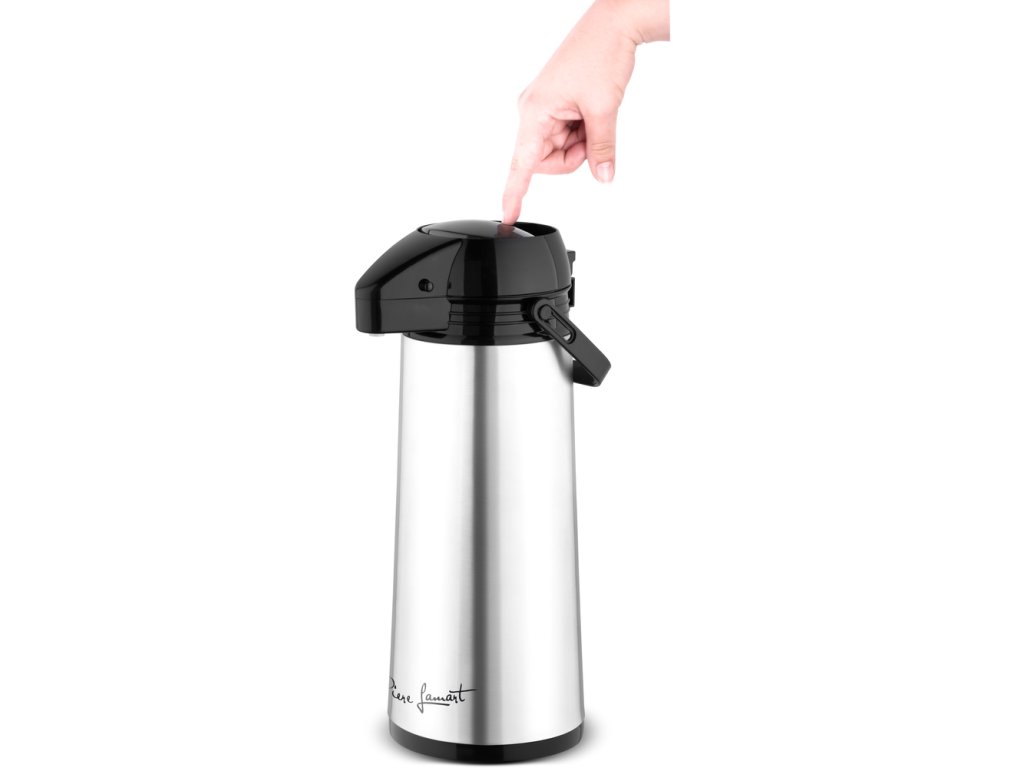 Termoska s dávkovací pumpičkou vyrobena z vysoce odolného plastu s vnitřní skleněnou vložkou