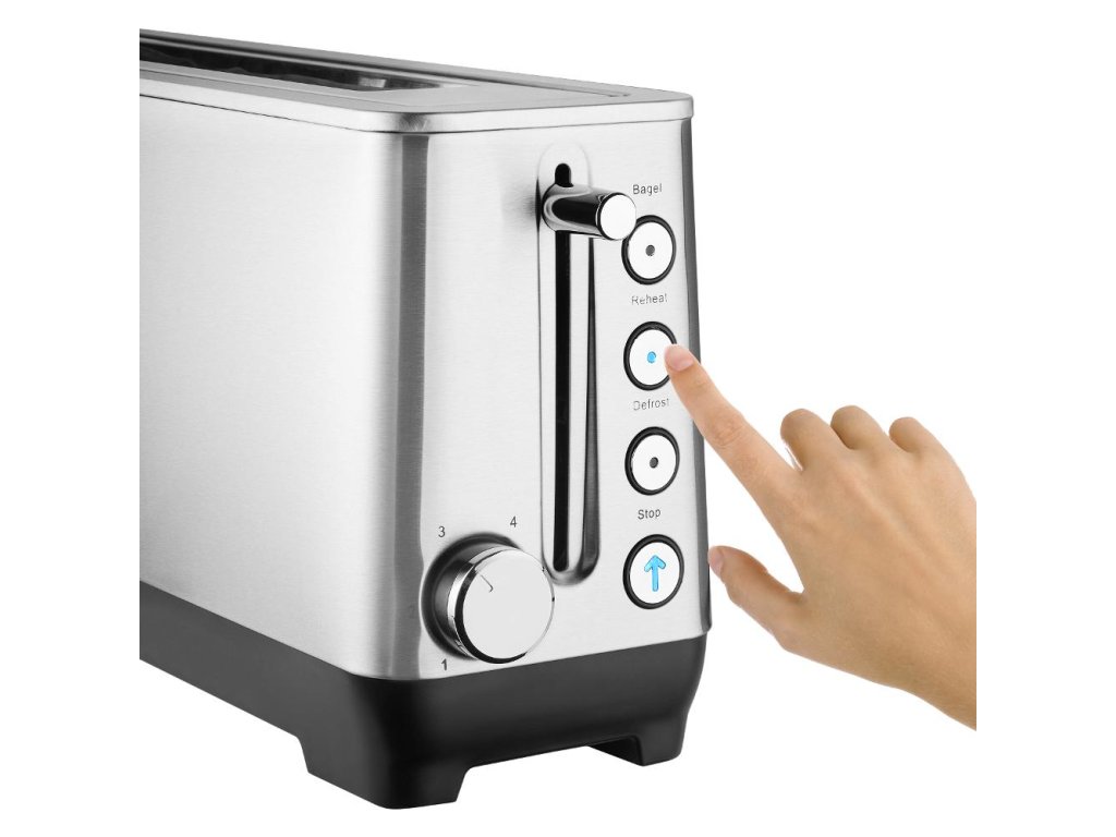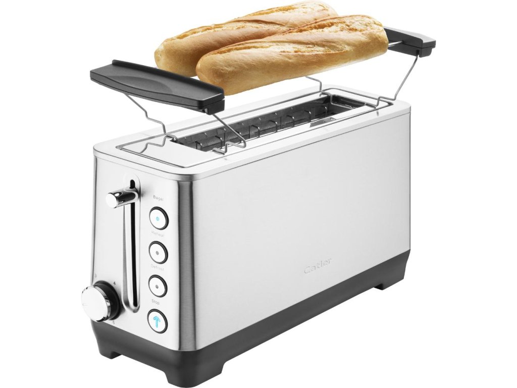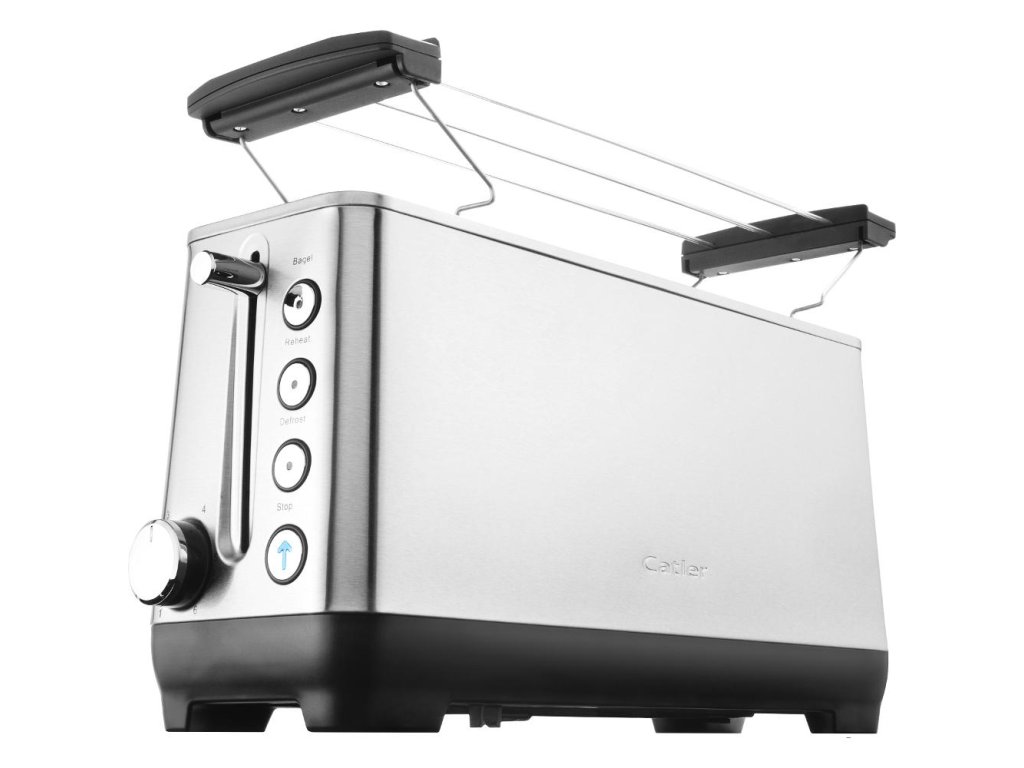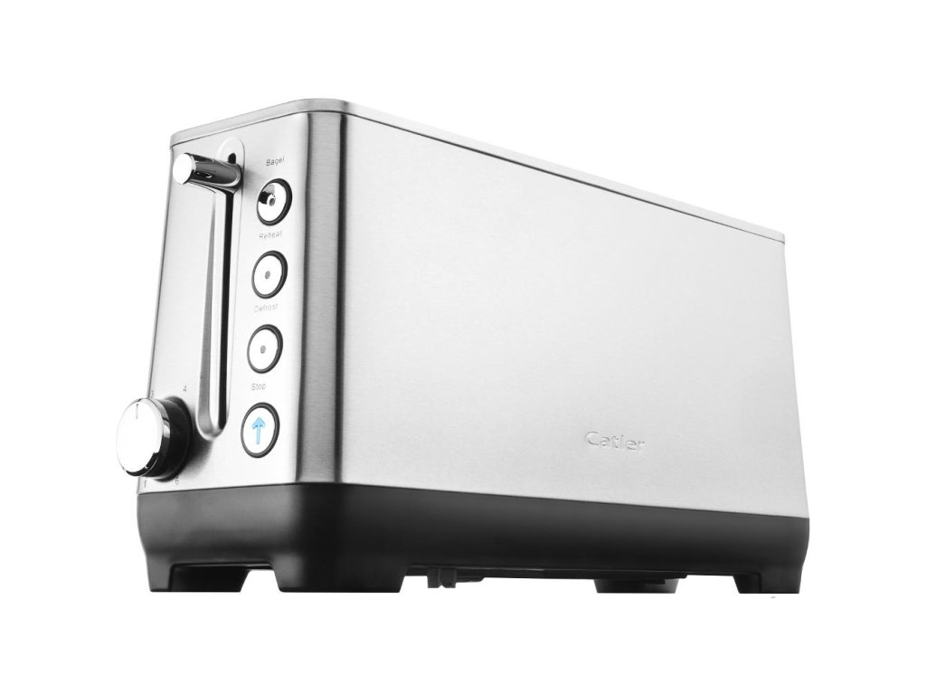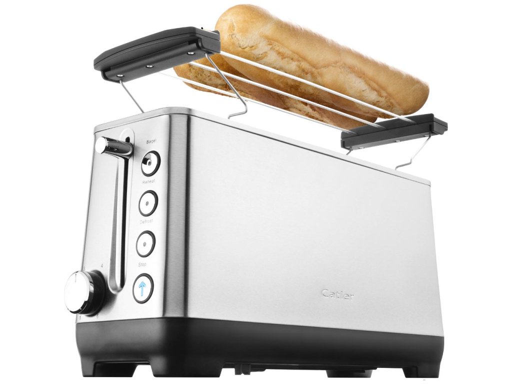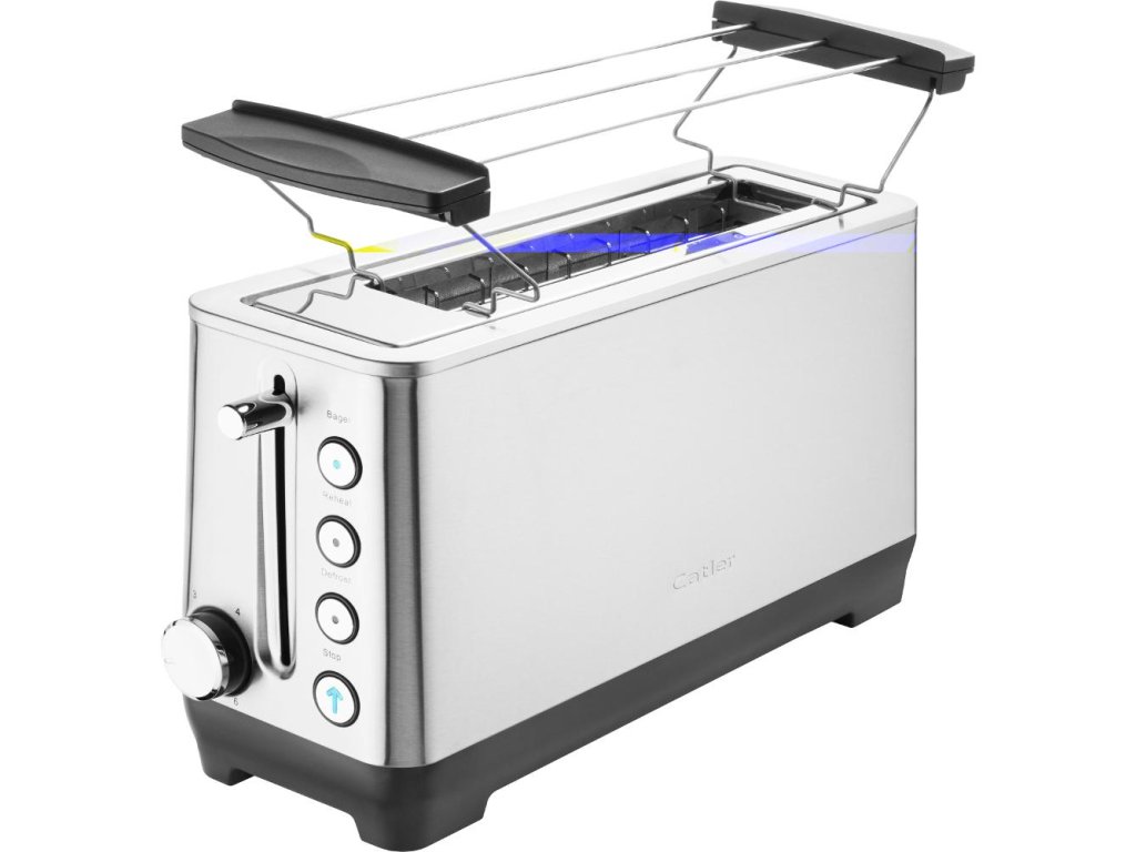 Catler představuje nový opékač topinek s extra délkou pro opékání 2 toastů vedle sebe, nebo celých krajíců či baget. Přesto je velmi kompaktní a skladný, takže ho můžete mít po ruce na lince. Jednoduchý design z kartáčovaného nerezu s modře podsvícenými tlačítky vynikne v každé kuchyni.