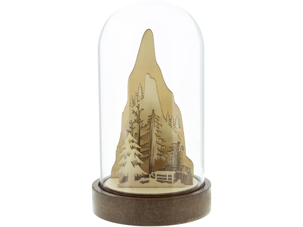 Vánoční skleněná kopule s dřevěným dekorem
