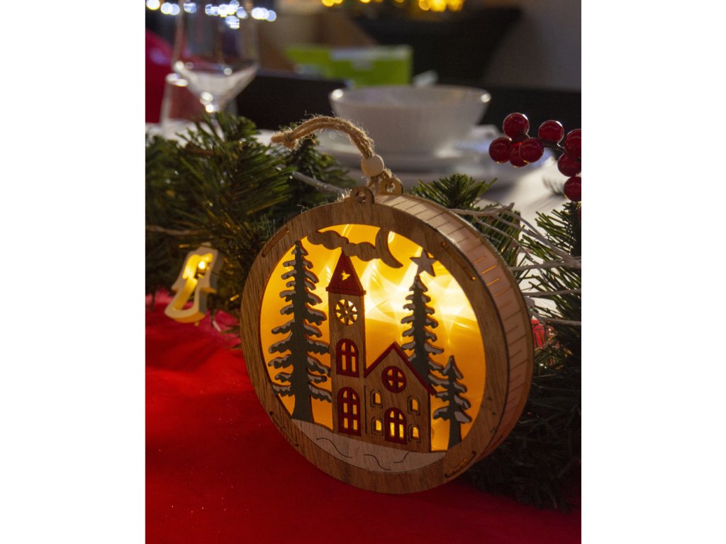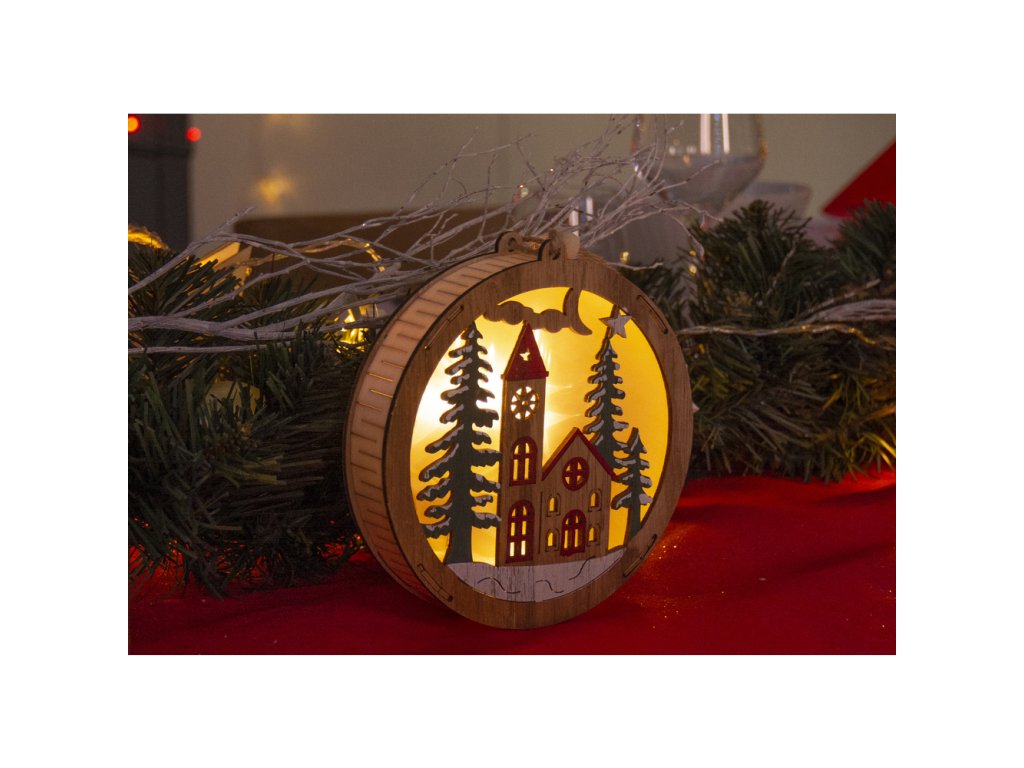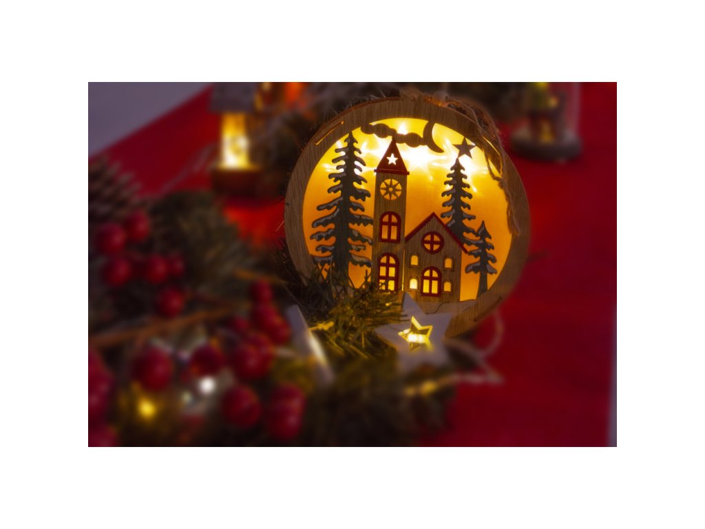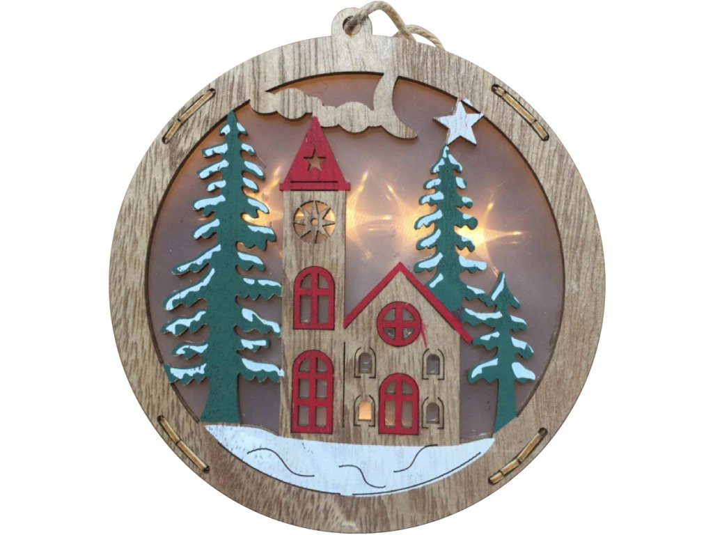 Retlux RXL 332 Závěsná dřevěná ozdoba s 3D kostelíkem 5 LED