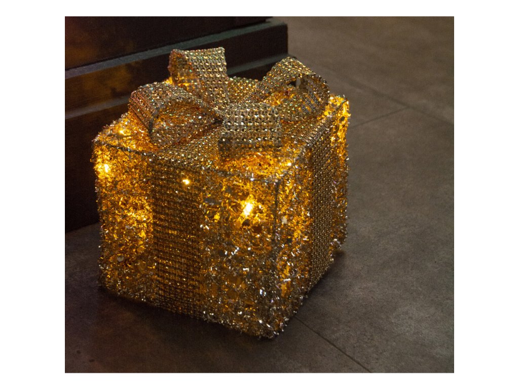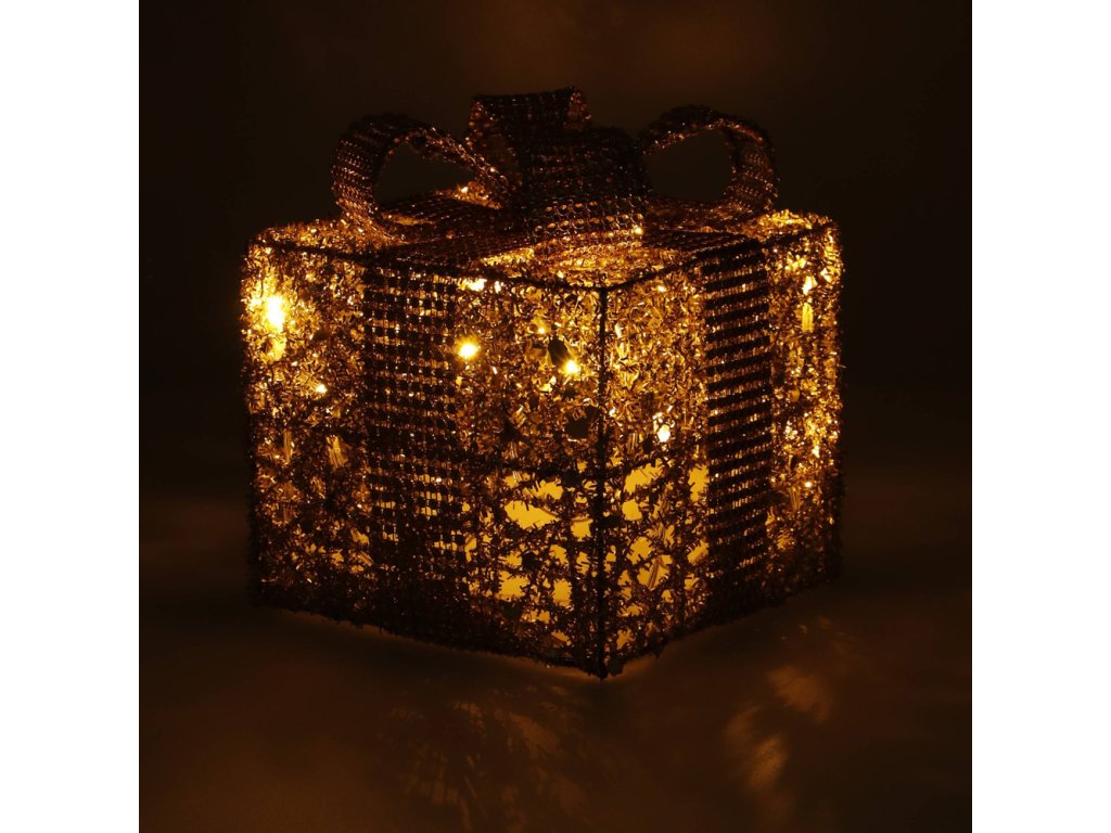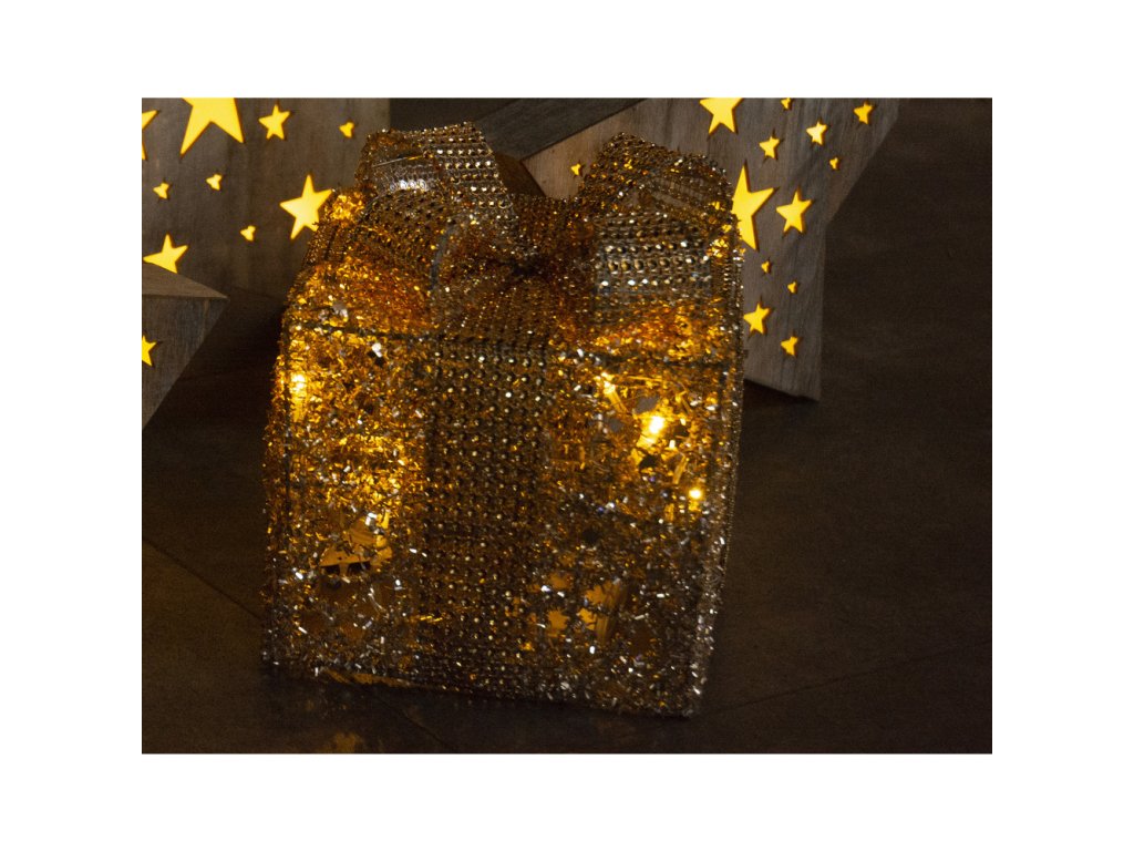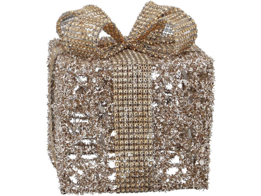 Drátěná dekorace ve tvaru dárku s třpytkami 10LED