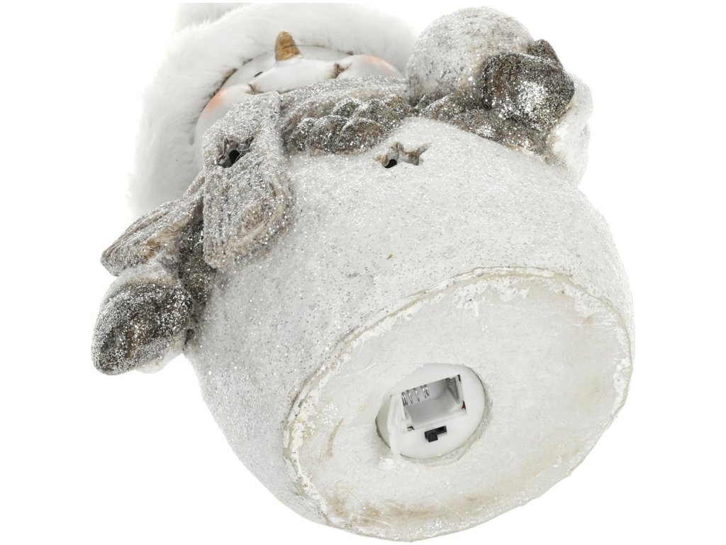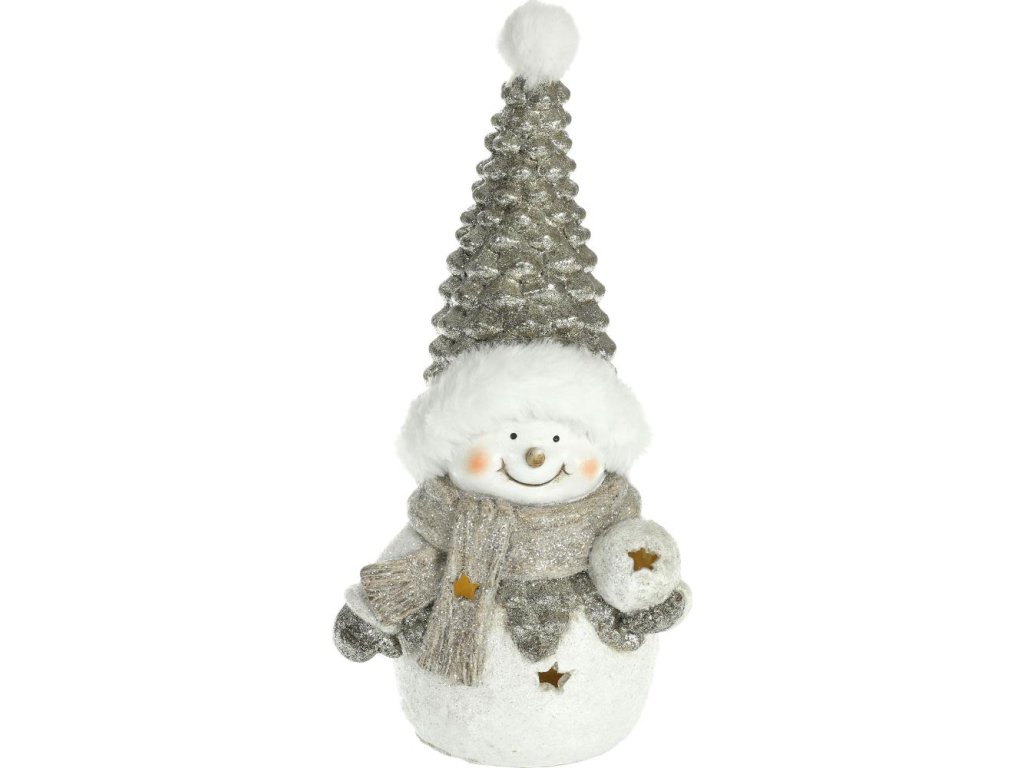 Stylová keramická LED dekorace – sněhulák v čepici s teplým světlem, časovačem a bateriovým napájením (3× LR44). Ideální vánoční doplněk bez kabelů.