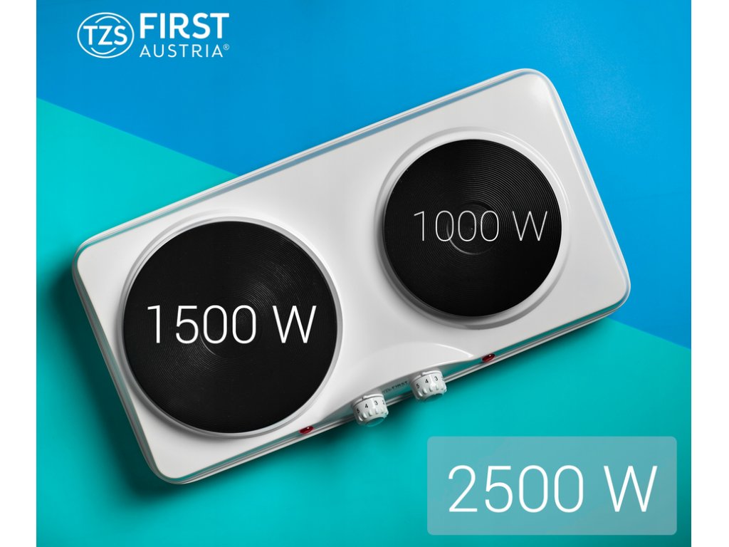 First Austria FA-5083-4 - elektrický přenosný vařič 2500 W, dvouplotýnkový, litinový