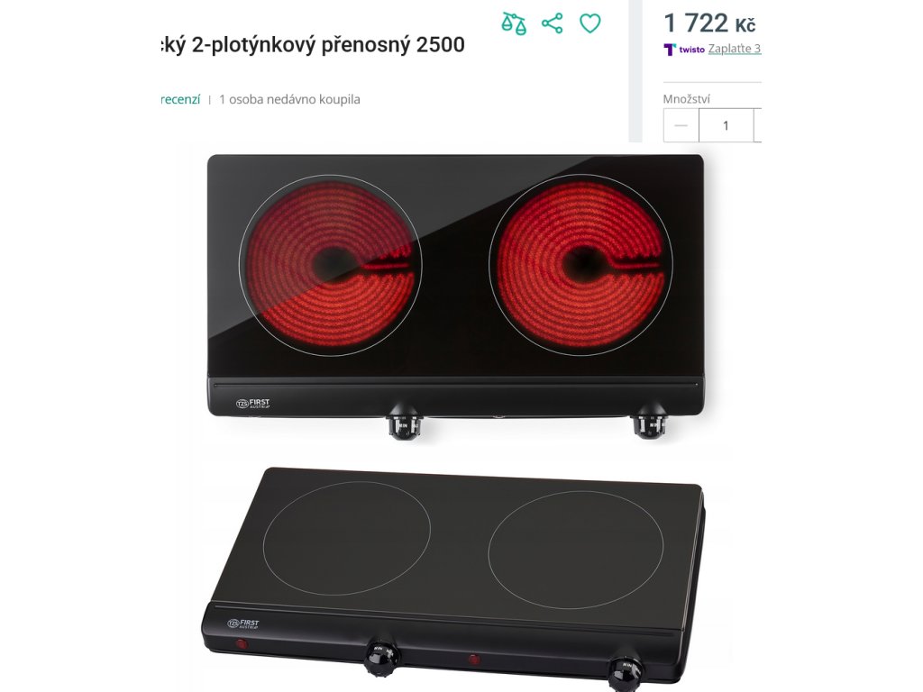 Dvouplotýnkový sklokeramický vařič s příkonem 2500 W