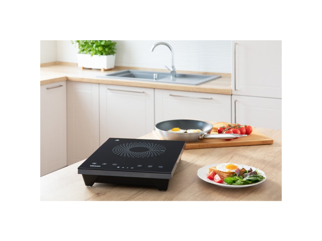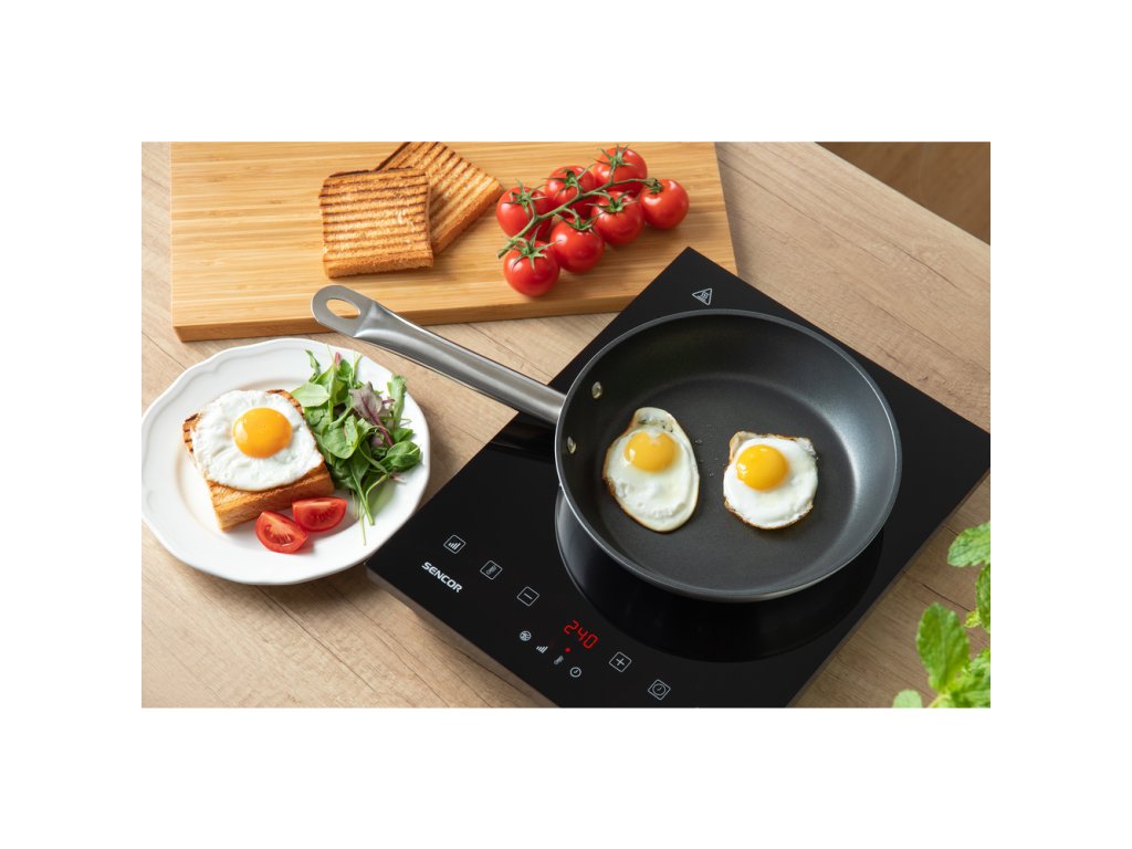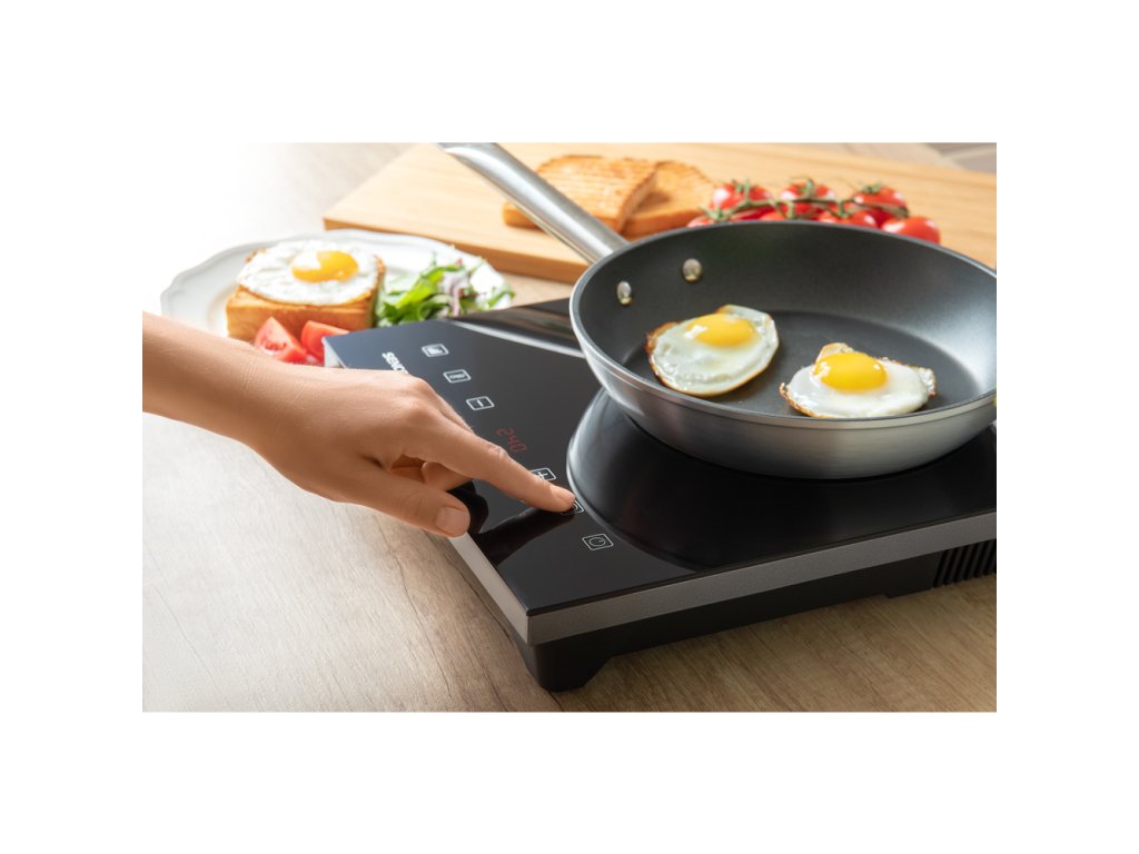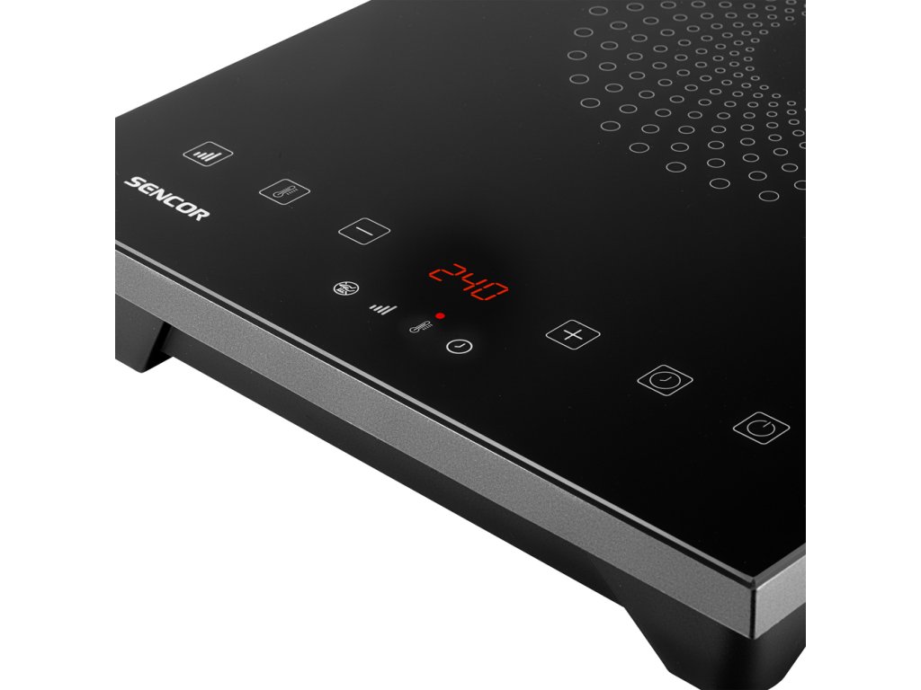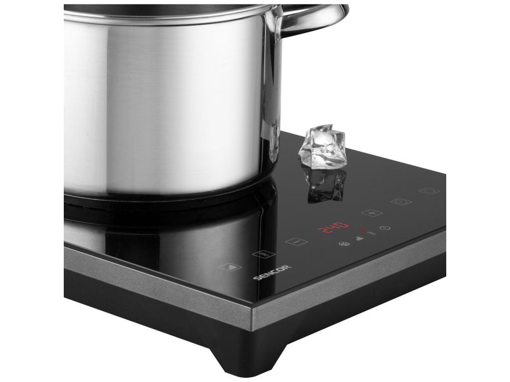 Vařič a jednotlivé funkce ovládáte dotykovými tlačítky. O teplotě a výkonu vás informuje přehledný velký LCD displej s červeným podsvětlením.