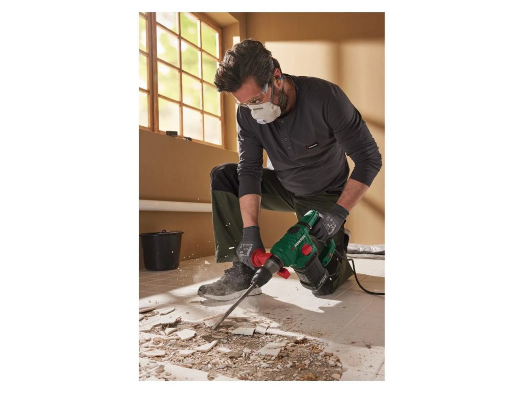 Výkonné vrtací a sekací kladivo PARKSIDE PBH 1550 C1 s příkonem 1 550 W je navrženo pro náročné práce ve stavbě i dílně. S maximální úderovou energií až 5 J umí efektivně vrtat, příklepovat i sekat v betonu, kameni, kovu i dřevu. Výrobek nabízí systém SDS‑Plus pro rychlou výměnu příslušenství, centrální přepínač funkcí (vrtání bez příklepu / příklepové vrtání / sekání), plynulou regulaci otáček, otočné držadlo a tlumení vibrací pro komfortní použití.
