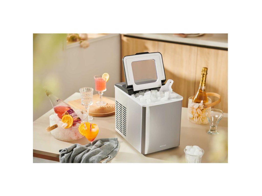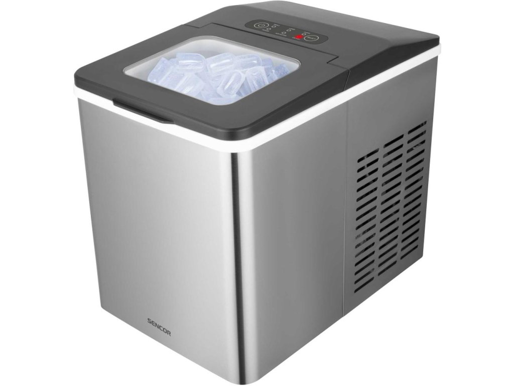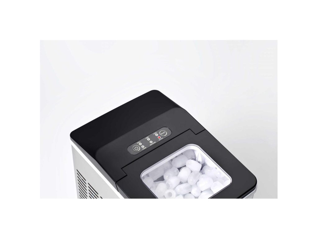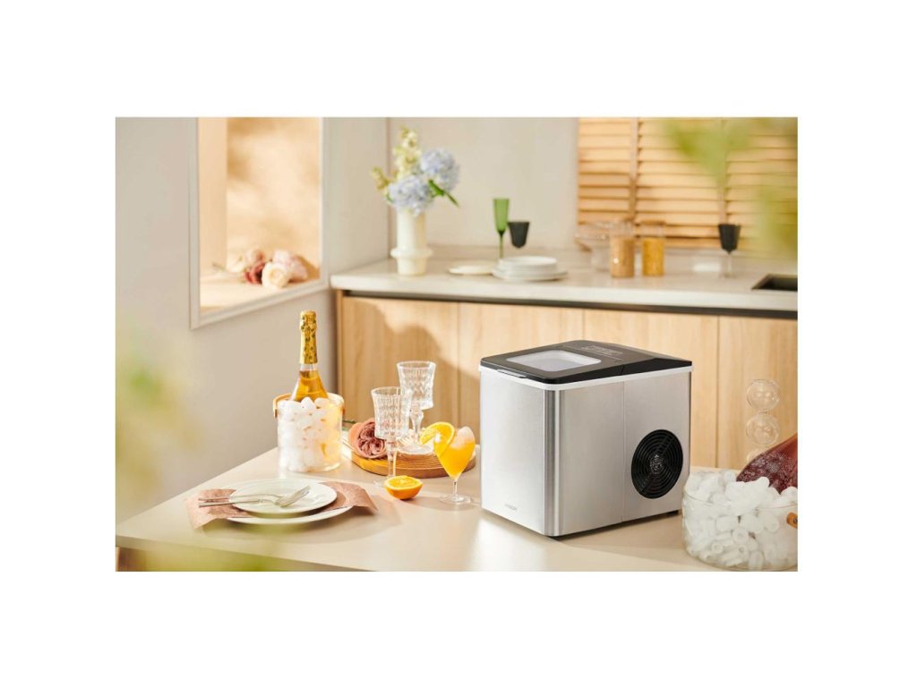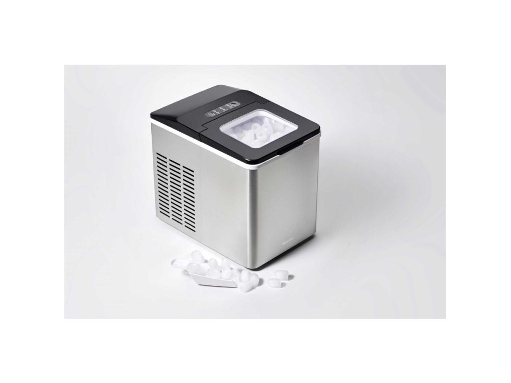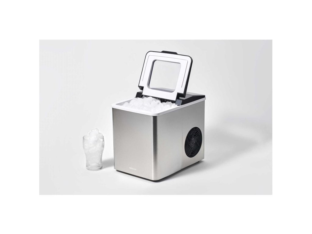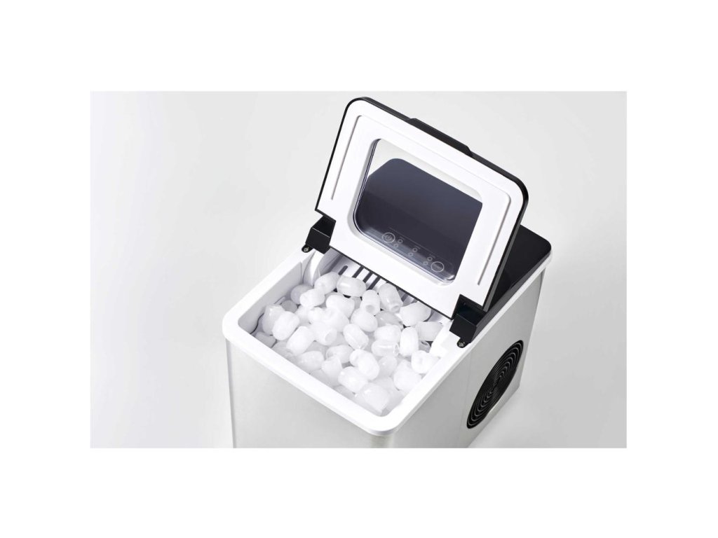 Kompaktní a stylový výrobník ledu do malé kuchyně s odolným tělem z nerezové oceli. Stačí přidat 1,8 l čerstvé vody, stisknout tlačítko a vychutnat si kostky ledu již za 7-15 minut. Ideální pro večírky – vyrobí až 12 kg ledu za den. Můžete si vybrat ze dvou velikostí kostek ledu ve tvaru projektilu. Tichý provoz vám připraví 9 kostek ledu v jednom cyklu a shromáždí je v koši na led o objemu až 500 g. Funkce automatického zastavení zajistí,že se výroba ledu zastaví, když je zásobník plný nebo nádoba na vodu prázdná. Sledujte výrobu ledu přes průhledné víko. Praktická lopatka na led ideální pro doplňování kbelíků na led nebo skladování kostek ledu. Snadné použití díky ovládání jedním tlačítkem. Vypouštěcí ventil pomáhá snadno vyprázdnit nádržku na vodu po skončení přípravy ledu.