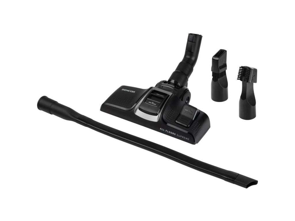 Příslušenství: kombinovaná podlahová hubice, dlouhá ohebná štěrbinová hubice, prachový kartáč,
