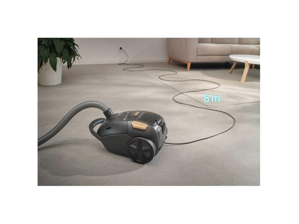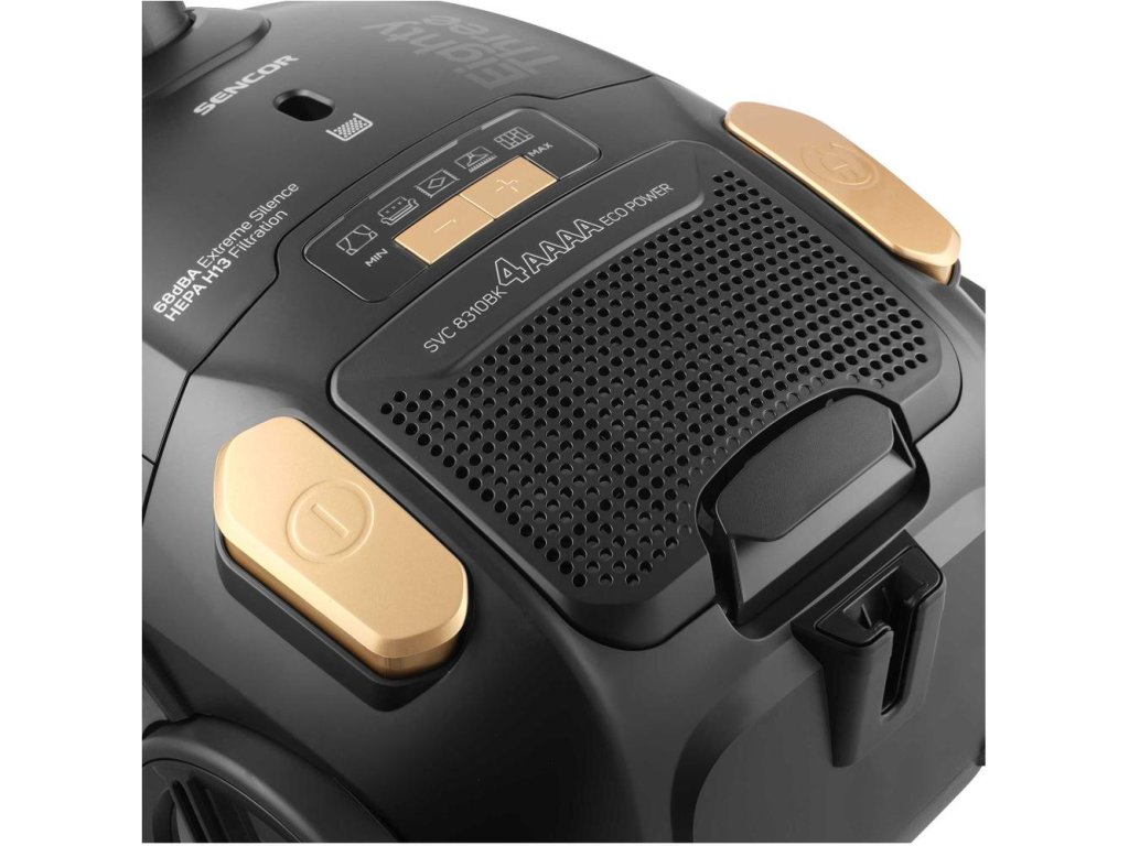 Sáčkový vysavač Sencor SVC 8310BK vyniká ve všech klíčových kategoriích — energetické účinnosti, výkonu na koberce i tvrdé podlahy a filtraci prachu — díky celkové klasifikaci 4AAAA. Tento model je vybaven moderním ECO Power motorem (800 W), výkonným HEPA H13 filtrem, tichým provozem 68 dB(A) a rozsáhlým příslušenstvím, které umožňuje rychlý a efektivní úklid i v náročných podmínkách.