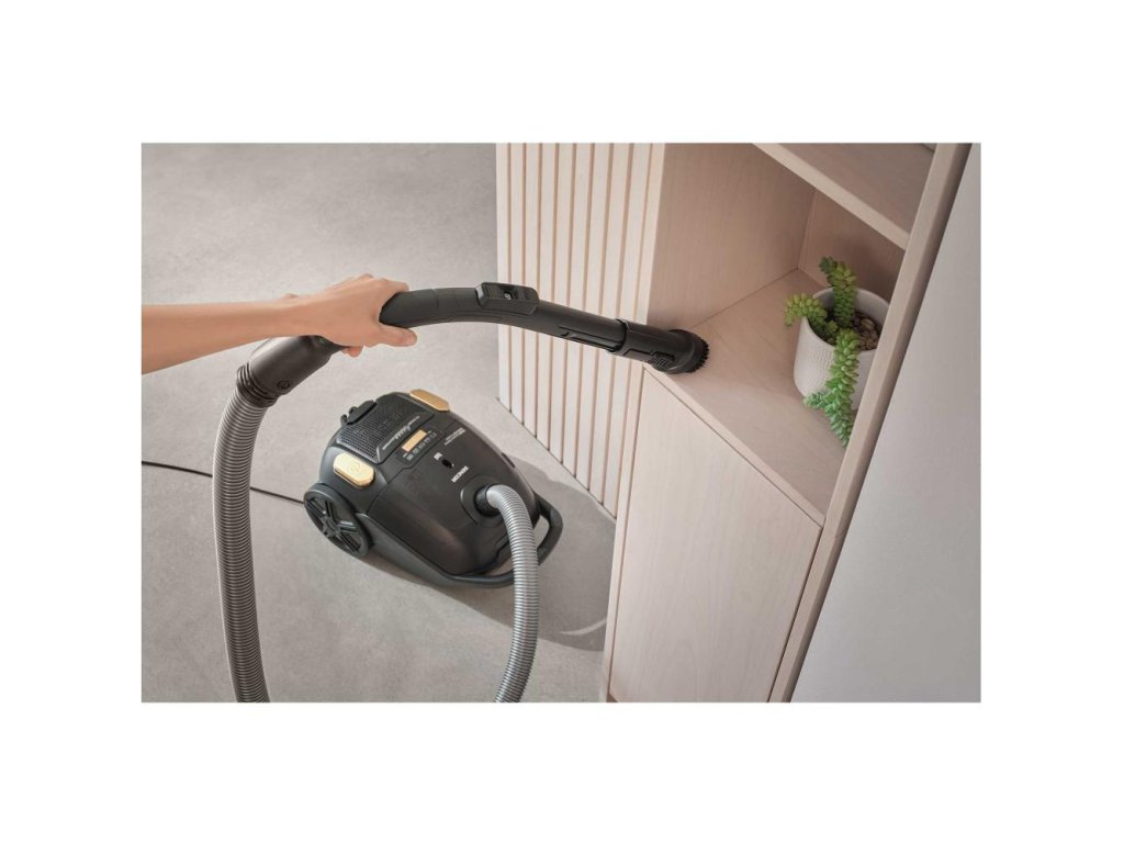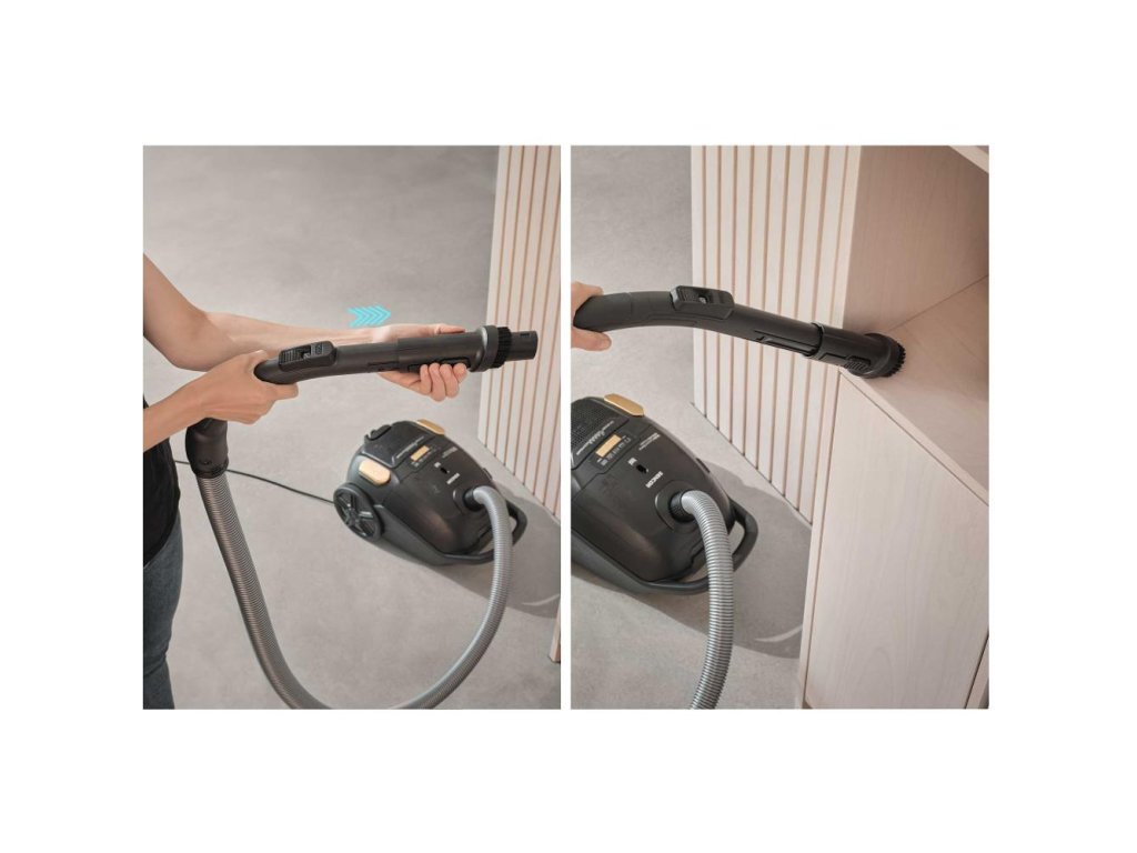 - Integrovaný kartáč na hadici – rychlé přepnutí od podlahového k úklidu prachu bez nutnosti měnit nástavce