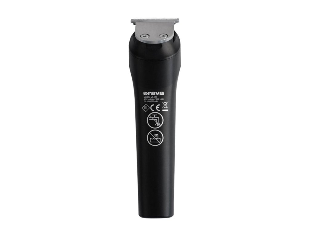 Kompaktní zastřihovač vlasů a vousů Orava VS-414 s nerezovými čepelemi, nastavitelnou délkou střihu (3–12 mm) a USB nabíjením. Až 90 minut provozu na jedno nabití.